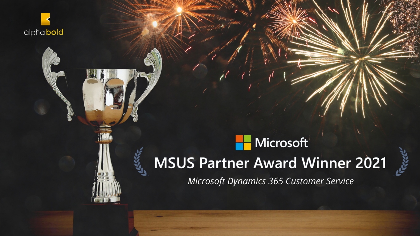 Carlsbad, California, USA – July 12th, 2021- AlphaBOLD named the 2021 MSUS Partner Award Winner for Dynamics 365 Customer Service. The company has been recognized with this prestigious award for demonstrating excellence in customer service and making exceptional use of advanced features in Microsoft technologies over the past year.