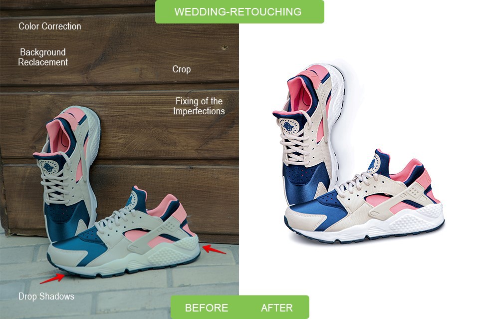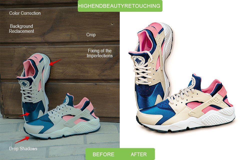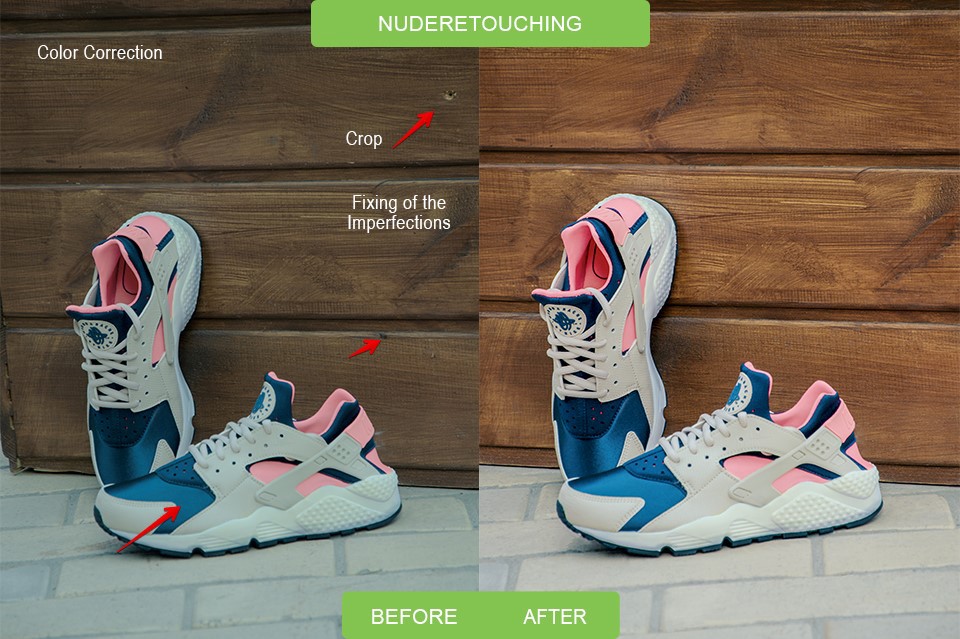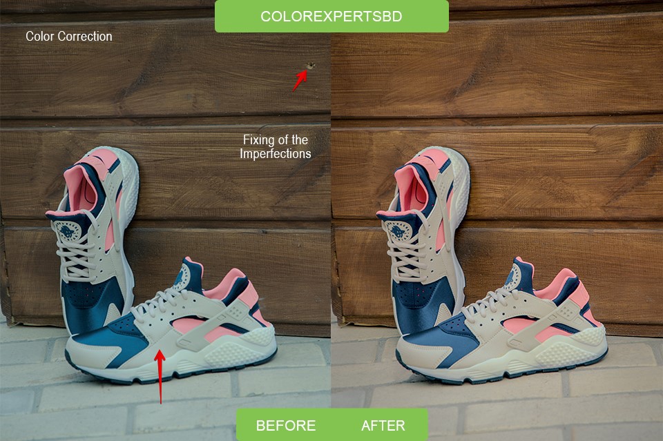 Let’s start with color correction. I didn’t see the professional work and was disappointed with the artificial look of colors. Their sole is supposed to be white, but instead it looks muddy!