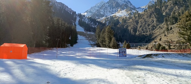 En guise de secours, la fondation a commencé à fabriquer de la neige artificielle. « Nous avons réussi à couvrir 20 % de la pente de Wildboar, où se déroulera la compétition, mais 30 % supplémentaires doivent être couverts avant le 13 février », a déclaré l’entraîneur. La neige artificielle n’est pas seulement une entreprise coûteuse ; Karim explique qu’elle nécessite également une certaine température, sans laquelle la neige fond. Ayant glissé sur de la neige naturelle depuis l’âge de quatre ans, il n’est pas très enthousiaste à l’idée de cette imitation.