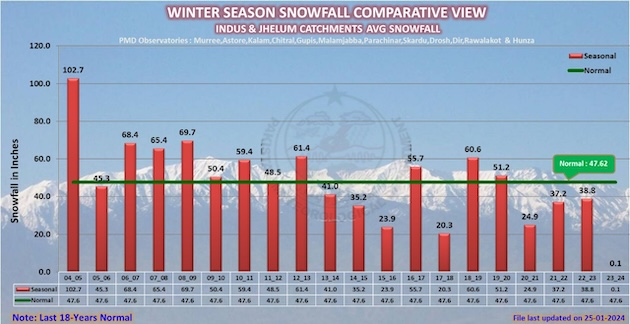 Arun Bhakta Shrestha, expert climatique principal à l’ICIMOD, soulignant l’impact du réchauffement climatique, a expliqué « l’absence inhabituelle de chutes de neige dans l’Himalaya, l’Hindu Kush et le Karakoram cet hiver, l’attribuant à »des températures plus chaudes et moins de jours et de nuits froids”.