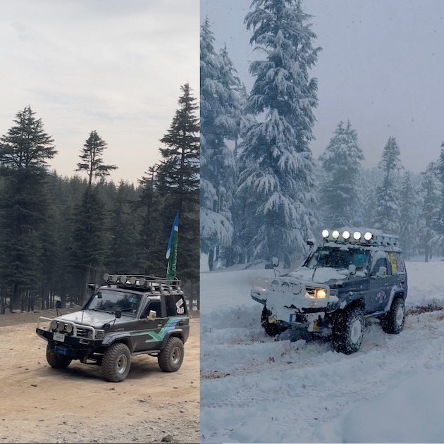 Les chutes de neige ont été tardives cette année, comme le montrent ces photos d’une Jeep à Shahi Ground à Kalam, Swat, Khyber Pakhtunkhwa, prises en janvier 2022 et 2024. Crédit : Khalil Wahab