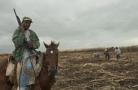 In response to some of the charges, Father Christopher Hartley, the priest portrayed in the film, produced to IPS over a dozen still photographs from 2003-2004 of armed men that he says were taken in and around Vicini-controlled sugar operations. In many of the photos, the men carrying pump-action shotguns are wearing baseball caps bearing the logo of the Ingenio Cristóbal Colón, a Grupo Vicini-controlled sugar complex on the outskirts of the Dominican city of San Pedro de Macorís.