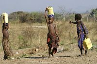 Children of the Ambororo nomadic tribe in south Darfur carry water in plastic containers for their families. Credit: UN Photo/Tim McKulka