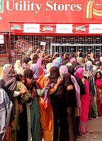 "Either I can vote or stand in this queue," said an irate Sheikh Mohammad Moin, standing since seven in the morning "with just a hurried cup of tea," waiting for the doors of the ‘Utility Stores’ to open.