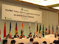 - Approximately 133 parliamentarians from 23 countries along with prominent politicians under a caucus called GLOBE (global legislators for a balanced environment) have gathered here ahead of the Jul. 7-9 G8 meetings in Hokkaido. They hope to influence the G8 – the world’s most industrialised countries – to adopt a policy for tacking climate change post-2012 when the current Kyoto Protocol ends.