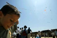 Khalid Zanoun, 12, like the others, always picks the spot where his house once stood. Up in the skies, he suddenly loses his kite in a dogfight. "He ran away from me!" he screams, looking at his disappearing kite, fists clenched. But soon he is beaming again, preparing another kite for the next battle with his unseen mates on the other side.