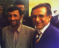 Hooshang Amirahmadi (right) and Iranian President Mahmoud Ahmadinejad at the U.N. General Assembly in September 2007. Credit: Hooshang Amirahmadi