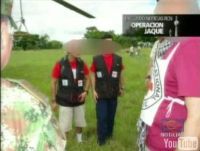 But the video shows the officers on the morning of Jul. 2 at a farm in southern Colombia, disguised as members of a supposed humanitarian mission. As they pose for the camera before the helicopters took off for the jungle pickup of the hostages at 11:59, one of them can be seen wearing a bib with the Red Cross symbol.
