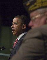 Democratic presidential candidate Sen. Barack Obama speaks to Veterans of Foreign Wars members in Orlando, Florida on August 19, 2008. Credit: David Katz/Obama for America