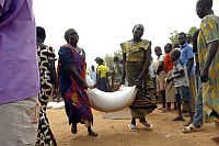 Internally Displaced Persons (IDPs) in Juba, Sudan carry away food and non-food rations supplied by the WFP and UNICEF after attacks on their villages. Credit: UN Photo/Tim McKulka