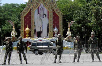 Thai troops take to the streets outside the king's palace to protect it from protesters. Credit: Macan-Markar/IPS