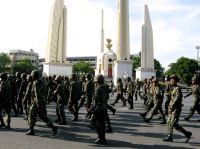 Thai soldiers pass the Democracy Monument in Bangkok as they deploy to drive out 'red shirt' protesters. Credit: Marwaan Macan-Markar/IPS