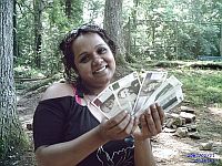 Esha Gordon holds up Berkshare currency. Credit: Matthew Cardinale/IPS
