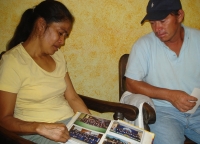 Rosmery González's parents look at photos of their murdered daughter. Credit: Danilo Valladares/IPS