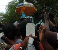 Worshippers like Ajith believe that the miraculous powers of the two-foot, 500-year-old statue of the Virgin had prevented any harm from befalling it or the Shrine. The church, located around 10 km deep inside a jungle, lay in the path of the advancing Sri Lankan government forces and fighters from the LTTE desperately trying to hold them in March and April 2008.