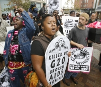Making their voices heard: Trinidadian Bekezela Mguni joined others demanding the G20 honour pledges to support AIDS prevention and treatment. Credit: William Farrington/IPS