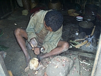 Her seven-year-old son, Mamitiana complains about the hard and exhausting work he has to perform each day: "I have to crush two big bags of gravel per day to make my mother happy."