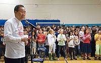U.N. Secretary-General Ban Ki-moon speaks at the United Nations International School on Oct. 16 about the "Stand Up Against Poverty" campaign. Credit: Bomoon Lee/IPS