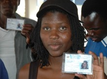 SWAPO supporter Martha Hamukoto and her friends show their new voter's cards. Credit: Servaas Van den Bosch/IPS