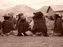 Micaela, in patterned poncho, meeting with women sexually assaulted by soldiers. Credit: Paula Escribens/DEMUS