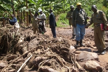 Officials assessing the damage caused by the latest landslides in Kabale, western Uganda. Credit: Joshua Kyalimpa/IPS