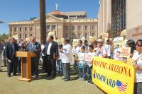 The action was joined by national figure Rev. Miguel Rivera, chair of the National Coalition of Latino Clergy and Christian Leaders (CONLAMIC), who travelled to Arizona from Washington, and the co-chairs of the Arizona Latino Caucus.
