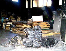 Curtains from windows had been torn down to help the fire burn. Qurans, which are usually piled up at one end of the mosque, had been moved to the other end and placed in piles next to the bathroom.