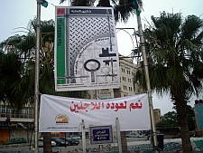 Posters in Ramallah mark 62 years of the 'Nakba' when Israel was established, causing Palestinians to flee. Credit: Mel Frykberg/IPS