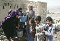 Children help an old woman fill her containers with water from a community pump in Dobra Khira near Sanaa, Yemen. Credit: UN Photo/Ian Steele