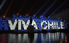Government palace lit up for bicentennial celebrations.  Credit: Alex Ibáñez /Office of the Chilean president