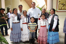 Incoming Oaxaca governor with indigenous family, on the eve of his inauguration. Credit: Courtesy of GabinoCue.org