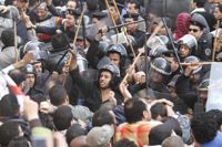- Demonstrations calling for the ouster of President Hosni Mubarak of Egypt continued for the second day in several Egyptian cities with police cracking down violently, a development that many analysts here say reflects the nervousness of the regime.