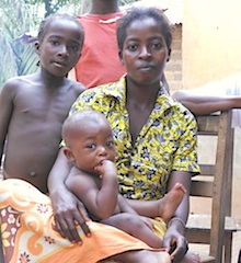 Mezouw Pellagie, from the village of Bin Houye right across the border from Butuo, holds a baby on her lap in Saye's yard. She came last year when incumbent President Laurent Gbagbo refused to step down after the U.N. certified his opponent, Alassane Ouattara, as the victor in presidential elections.