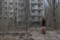 There are no familiar objects in the many empty apartments: pillagers have over the years emptied Pripyat of its treasures. But Alina knows she is home when, on the curb of a window of the fourth floor, she sees herself as baby smile in an old portrait purposefully left there by her father.
