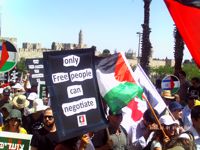 But the march was also unique because, for the second time in 44 years and two generations of peace activism trying to correct the wrongs of the occupation, it brought together Israelis and Palestinians, even though most participants were Israelis.