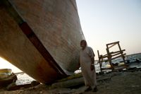 With no orders coming in for new boats, Bakr survives by boat maintenance, including normal sea wear and paint touch-ups.