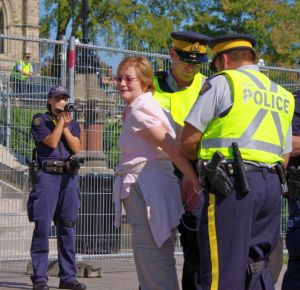 Maude Barlow, chairperson of the Council of Canadians, is arrested at the Sep. 26 tar sands protest. Credit: Renée Leahy/IPS