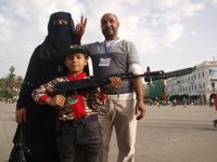 “Did you know that more than 60 people were injured here by accident when they killed Gaddafi?”, adds the 35-year-old woman. Fifty metres behind us, a man takes a picture of his children holding a Kalahsnikov rifle.