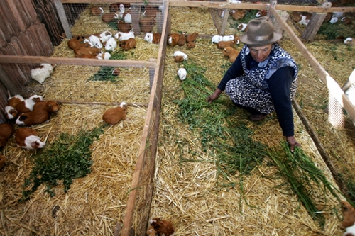 Teófila Anchahua in the highlands of Peru raises guinea pigs with the help of a microloan. Credit: Julio Angulo/IPS