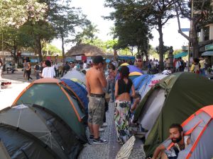 In Rio the movement has met with no opposition from the police, who have apparently gotten used to the presence of the demonstrators in the square.