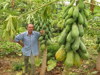 Giant papayas grown with the help of an underground reservoir in Laginhas, Pernambuco, in Brazil's arid Northeast. Credit: Mario Osava/IPS