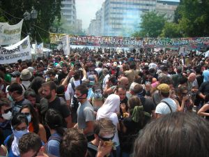 Demonstrators surrounding Greek parliament in June to protest austerity plan. Credit: Bego Astigarraga/IPS