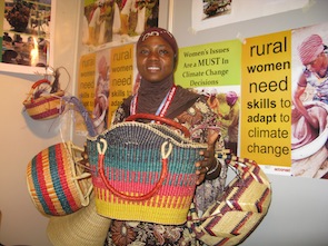 Nalifu Yussif holds a few Bolga baskets at the ongoing COP 17 in Durban, South Africa. Credit: Isaiah Esipisu/IPS