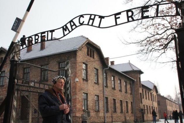 Igor Malitski in front of the gate to Auschwitz. Credit: Christian Papesch/IPS