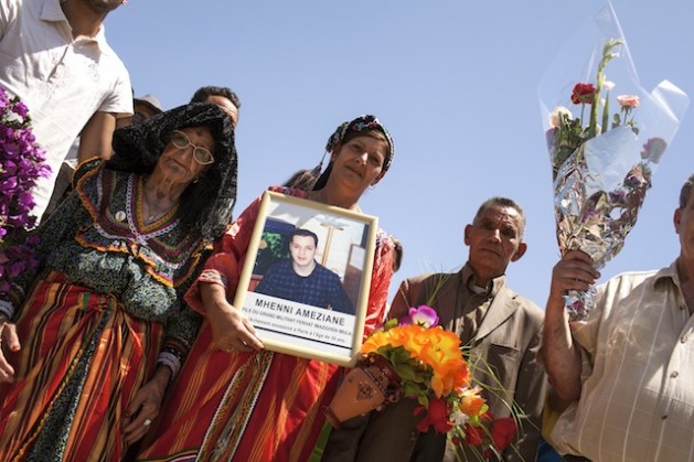 Paying homage to the Amazigh singer Ferhat Mehenni’s son Ameziane in Maraghna, in Kabylia region in Algeria. Credit: Karlos Zurutuza/IPS.