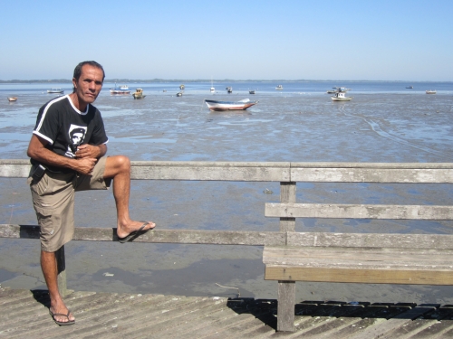 Isac de Oliveira points at the mud that has buried the beach at Pedra de Guaratiba on Sepetiba Bay at the western tip of Rio de Janeiro. Credit: Mario Osava/IPS