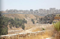 Many Palestinian labourers from the Shuafat refugee camp across the barrier work on construction in the Israeli settlement Pisgat Zeev in East Jerusalem to the right. Credit: Jillian Kestler-D’Amours/IPS.