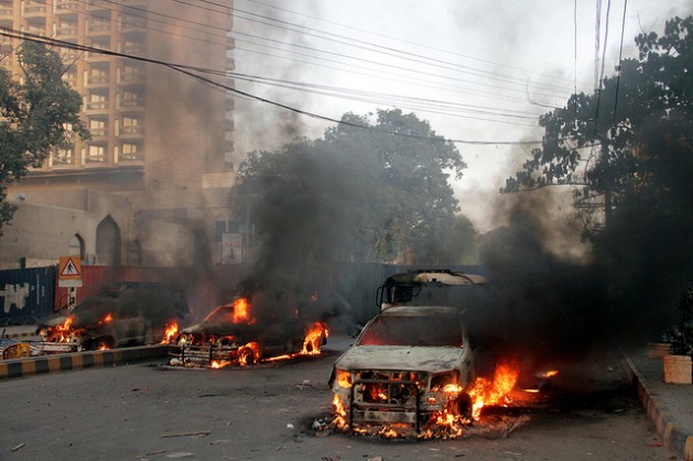 A Karachi street during the rioting on Sep. 21. Credit: Adil Siddiqi/IPS