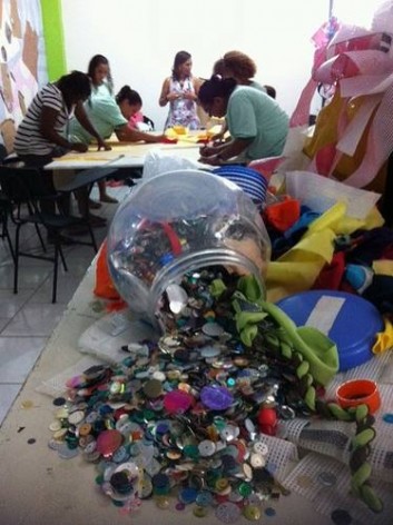 EcoModa works with these cast-offs from the textile industry, with the sequins and feathers left behind from Carnival, even with plastic bottles and glasses.