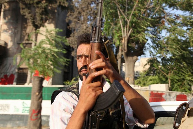 Rebels travel in the back of a pickup truck in a town in northern Syria. Credit: Freedom House/cc by 2.0